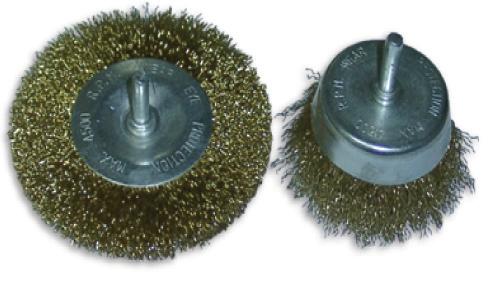 3418230 Набор щеток-крацовок со шпилькой (Ø 6 мм) для дрели, крученая стальная омедненная проволока (Ø 0,3 мм) :
